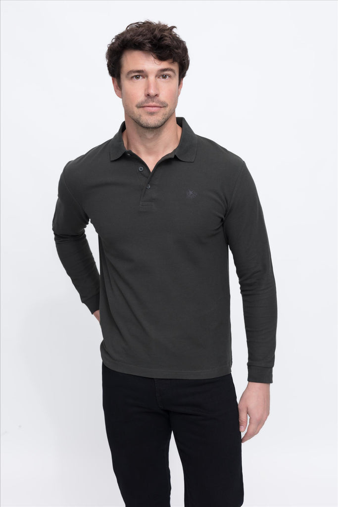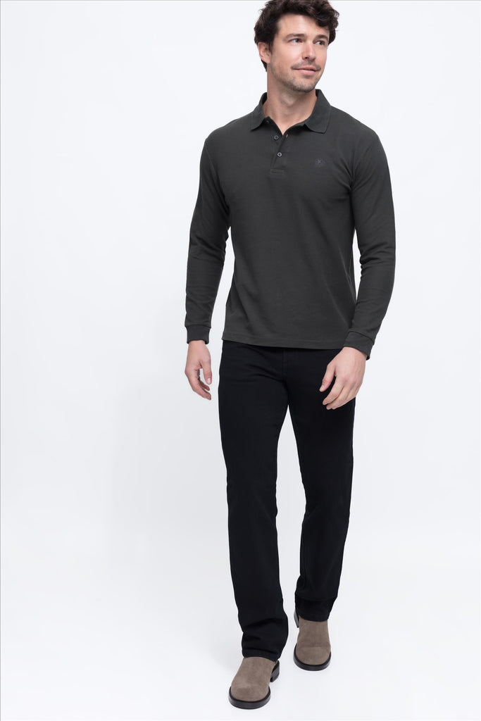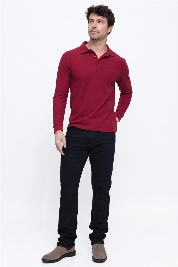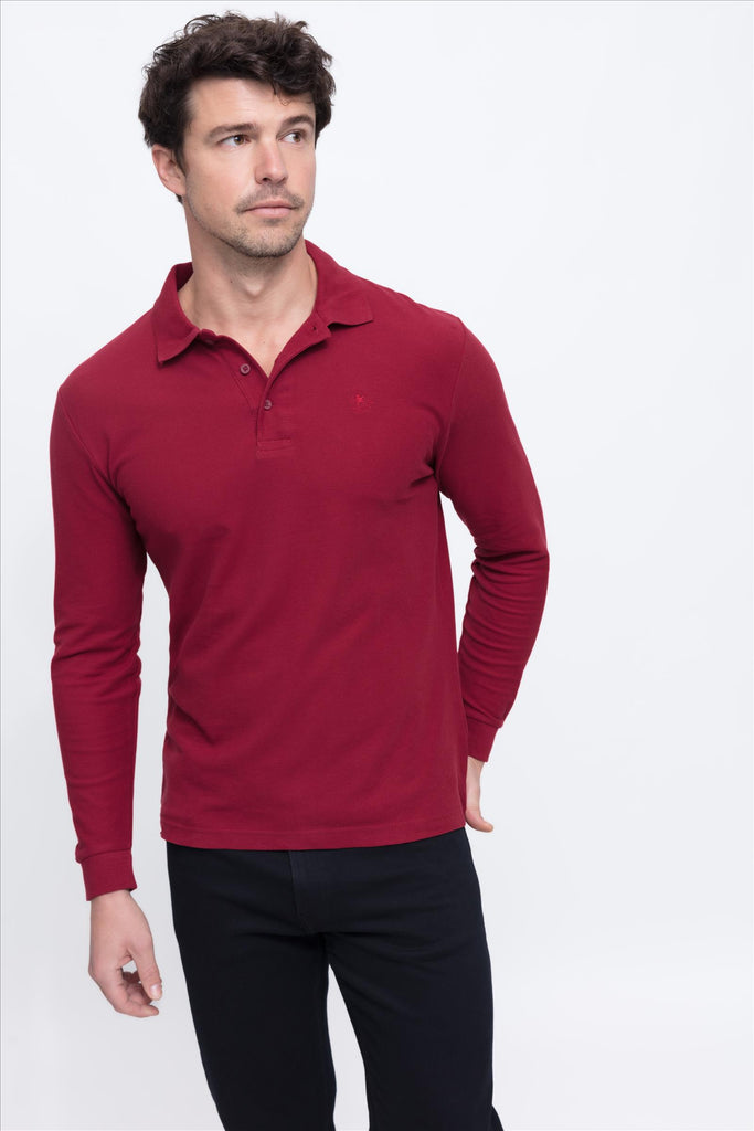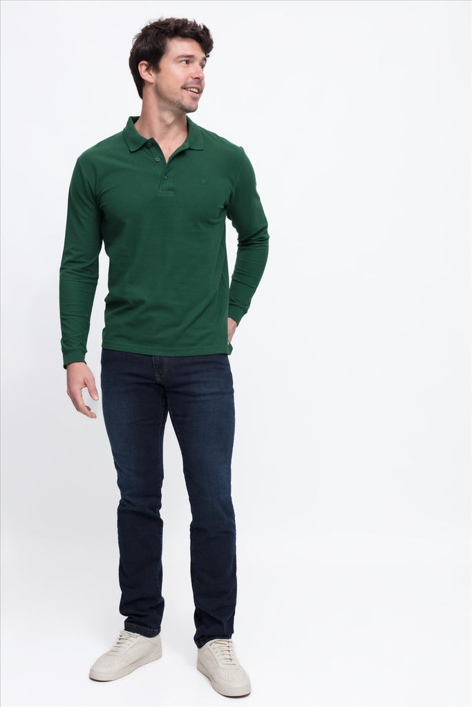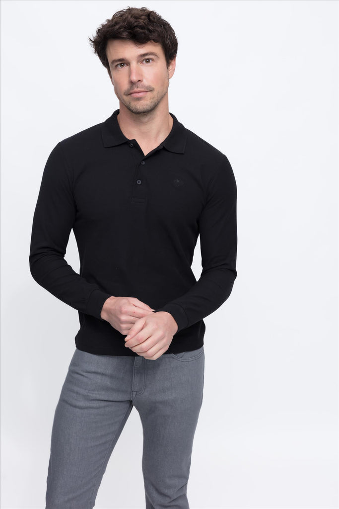 Polo básico de piqué. Manga larga. Patente en puños. Cuello con botones. Disponible en colores.