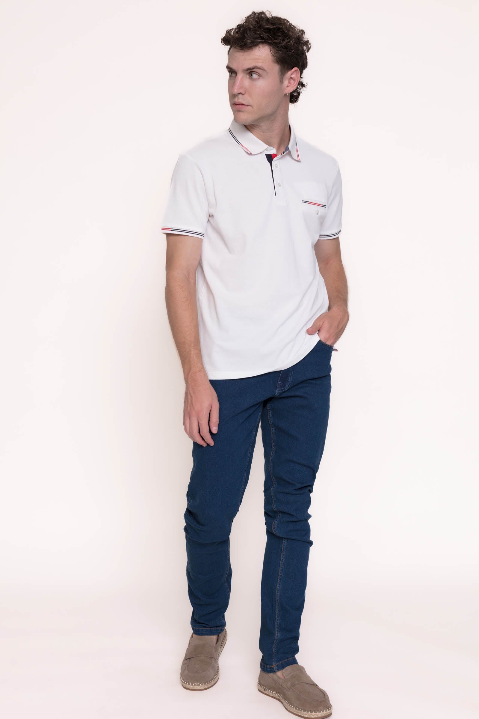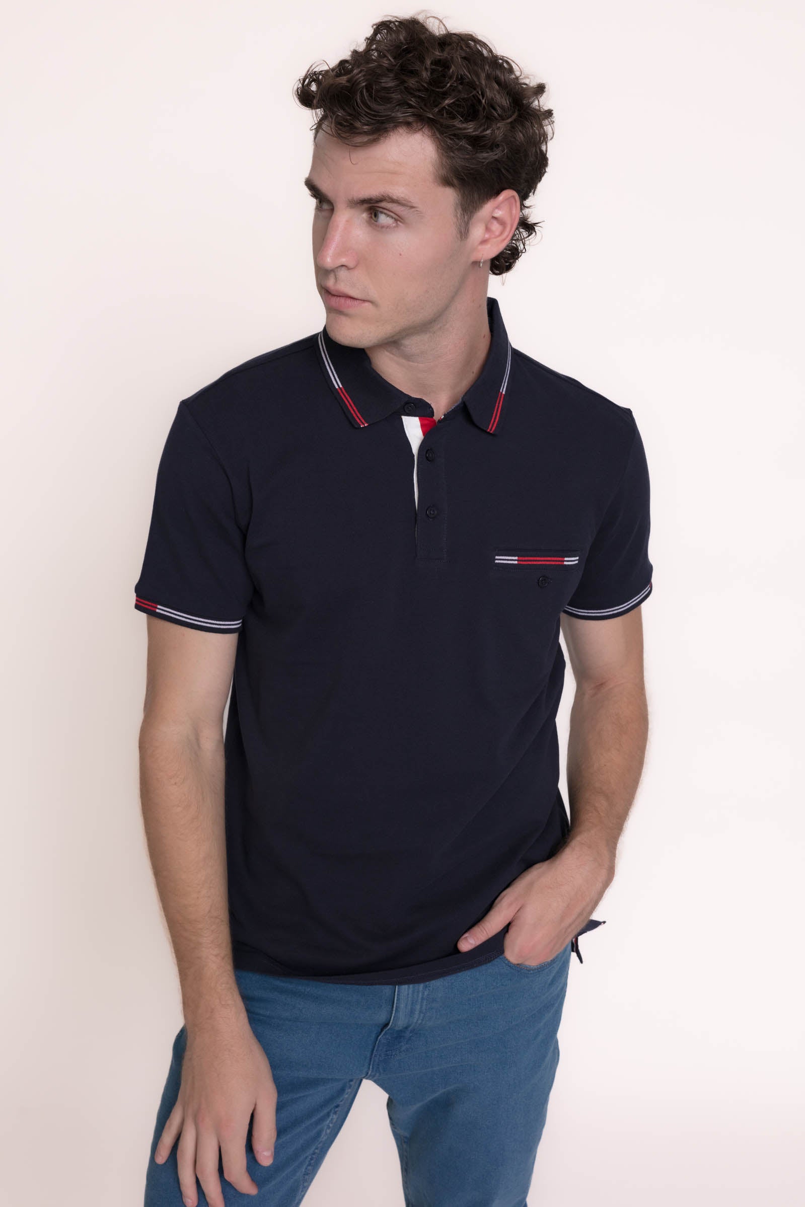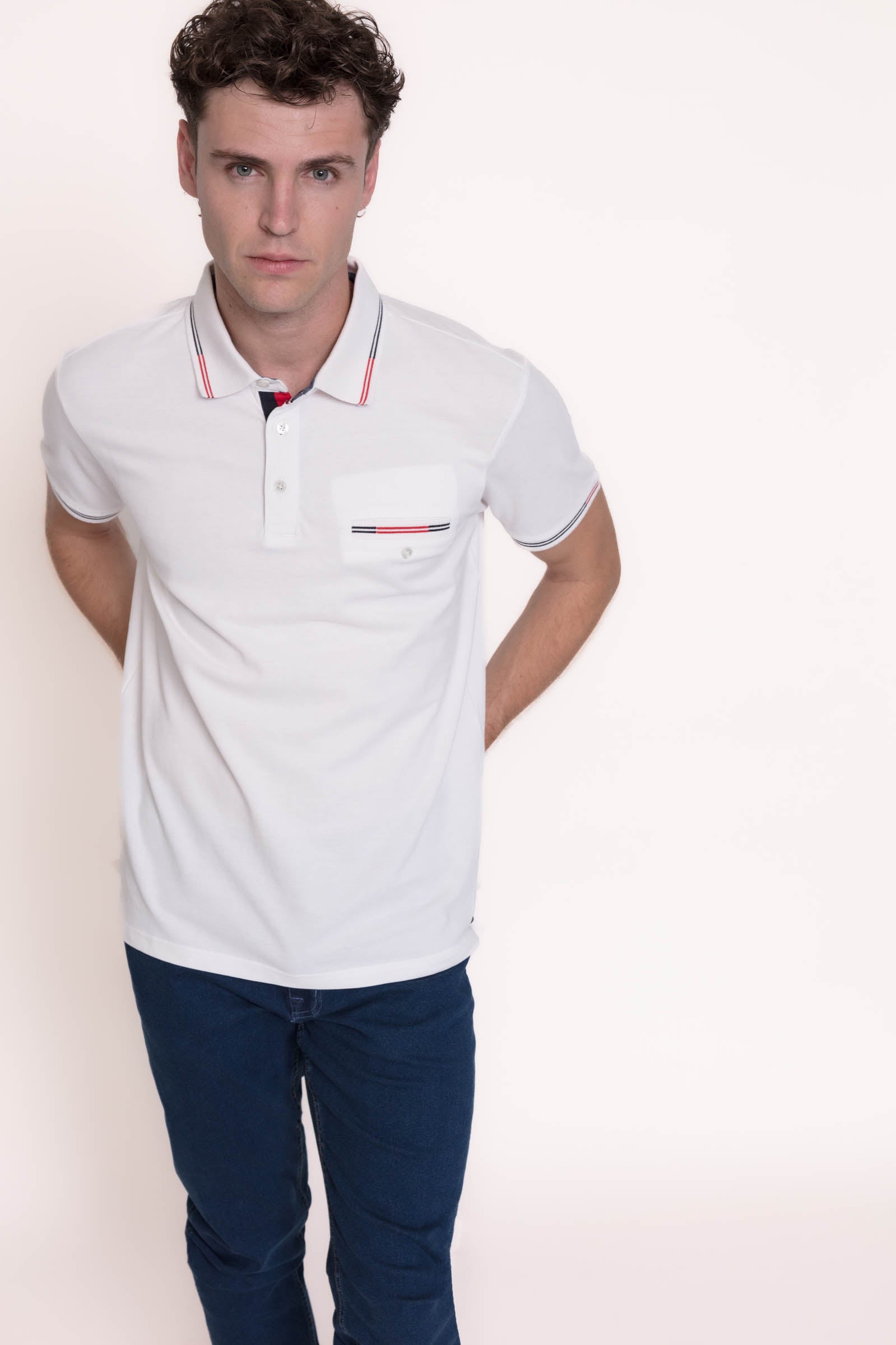 Polo de manga corta de algodó-lycra con bolsillo.