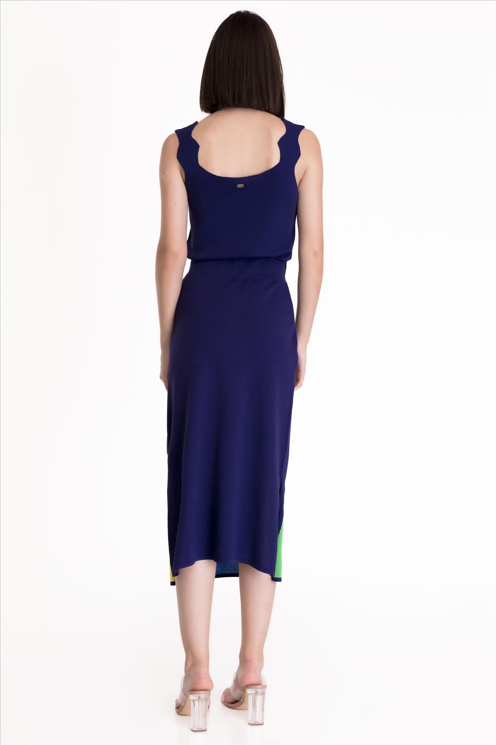 Top de punto doble con tirantes formando ondas y escote redondo. Diseño versátil y exclusivo.